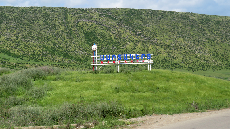 Не доезжая до Мартакерта, с левой стороны дороги виднелась соответствующая надпись о приближении города на армянском и английском языках. К слову, все мартакертцы гордятся своим земляком Темиком Автандиляном, Героем Советского Союза, геройски погибшего в Германии в 1945 году.
