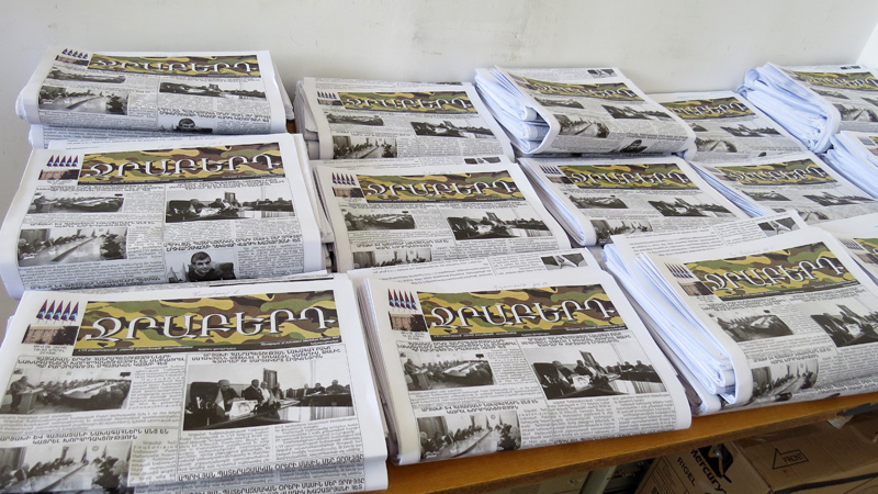 В разговоре с ней я узнал, что тираж газеты составляет 1500 экз. и выходит она два раза в месяц. Газета бесплатная, раздаётся в 43 общины района. Есть подписчики в районах Карабаха, Степанакерта, Армении. Через определённые каналы, газета отправляется в Россию, Чехию, Германию. «Во время войны я вообще не выезжала из Мартакерта, работа наша не прекращалась ни на час. Мне приходилось самой выезжать на линию фронта, так как я не рисковала посылать корреспондентов... На флешке отвозила материал в типографию в Степанакерт, чтобы наша газета вышла в срок» - в разговоре со мной сказала Лусине Закарян.