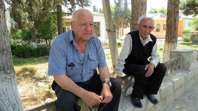 Выйдя из магазина, я проехал по центральной улице Мартакерта и увидел двух мужчин, сидевших на металлической ограде, и мирно беседовавших. Подошёл к ним, представился, между нами завязался разговор. Обоих звали Размиками. Слева на фото – Размик Шахнуманц, а справа – Размик Вердиян. Как и все карабахцы, эти двое взрослых мужчин были готовыми политологами, но без дипломов. Поговорили о ситуации на фронте, о решении Карабахского вопроса и многом другом. У Размика Щахнуманца один сын живёт в Степанакерте, второй в России. Оба зовут родителей к себе, но Размик категорически против. «Я родился в Мартакерте, здесь моя родина, мои предки отсюда, куда мне ехать и зачем? Летом 1992 года, когда азербайджанцы вошли в Мартакерт, с женой мы вынужденно уехали в Россию, к сыну, но потом решили вернуться. Сыновья купили мне подержанный Жигулёнок, на котором я работаю таксистом. Сказать, что много денег зарабатываю, было бы неправдой, но для меня главное, что я дома не сижу...» - говорит Размик Шахнуманц.