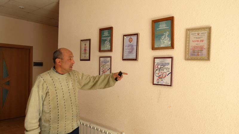 Преподаватель музыки (аккордеон) Карен Айрапетян показывает грамоты, полученные детьми на различных конкурсах.