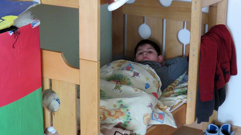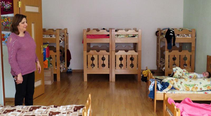 Воспитательница Цовинар Лазарян  укладывает детей спать.