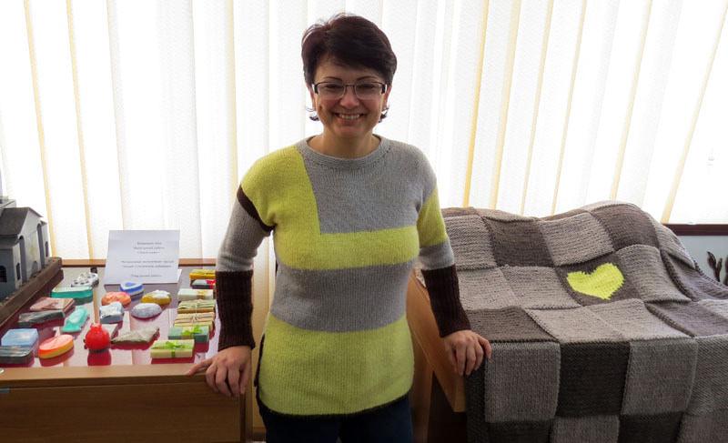 Инга Багдасарян, Степанакерт. На стенде слева: мыло ручной работы, состоящее из косметических масел, соды и воды, экологически чистый продукт. Справа плед ручной работы. 50% шерсть.