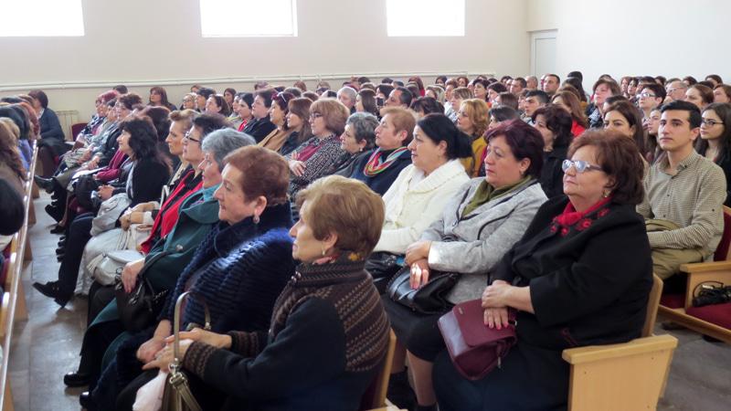 Детишки школы встретили гостей прекрасным флешмобом, звучали армянские и русские песни. После этого гостей встретили хлебом и солью. В холле школы, гости и участники мероприятия возложили цветы к стенду, где висели фотографии погибших в Карабахской войне...