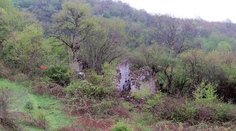 Погода была пасмурная, но мы решили поехать, не смотря ни на что. Как и в прошлые разы, нас сопровождали проводники: работник отдела Аллы Вреж и житель села Патара Мгер. Выехав с дороги, мы углубились в Патаринский лес. Километров через пять мы сошли с автобуса и начали подниматься в гору, где скоро нашему взору открылась церковь «Чохтак ехци», а точнее то, что осталось от некогда красивого культового здания...