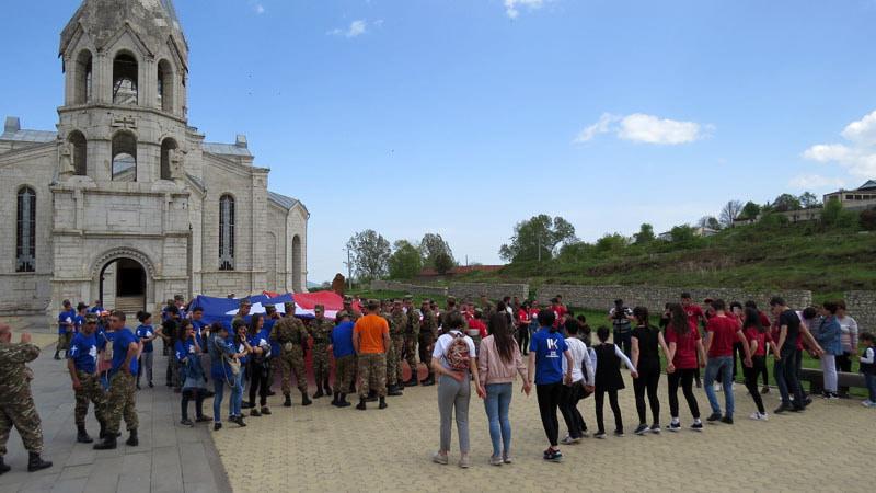 Они собрались на территории церкви Казанчецоц (19 в.) в Шуши, где веселились, пели песни, танцевали армянские народные танцы...