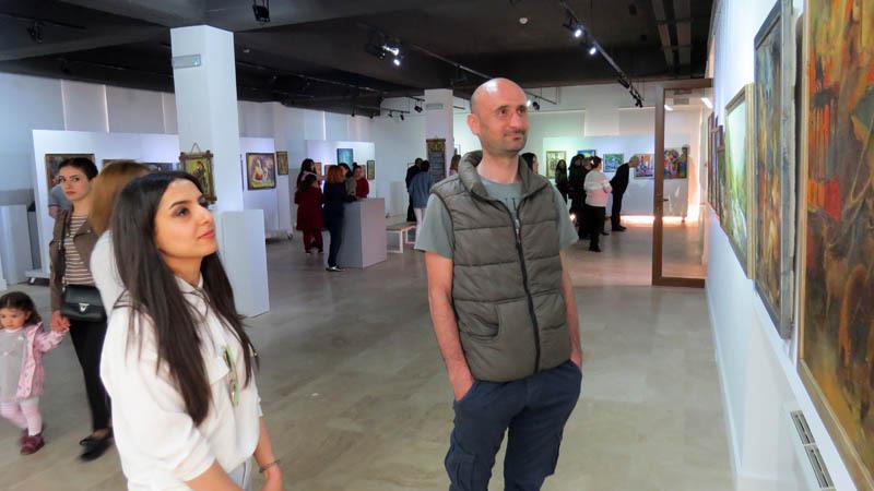Посетители выставки работ Левона Атоянца. Картинная галерея г.Степанакерта.