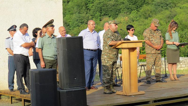 Подъехав к КПП, я припарковался и зашёл на территорию лагеря, где было уже построение на плацу. Зам начальника лагеря майор Самвел Саруханян докладывал начальнику майору Арсену Арутюняну, последний, в свою очередь – зам. командующему армии обороны Арцаха генерал-майору Вардану Балаяну.