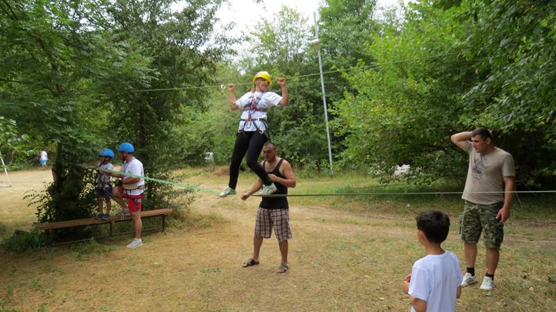 Днём было организовано туристическое соревнование «Прохождение этапов препятствий». А препятствия - это кочки, параллельная, маятник, навесная, бревно, перенос пострадавшего.