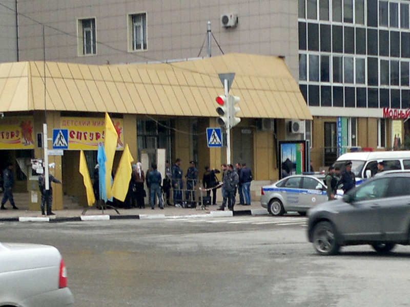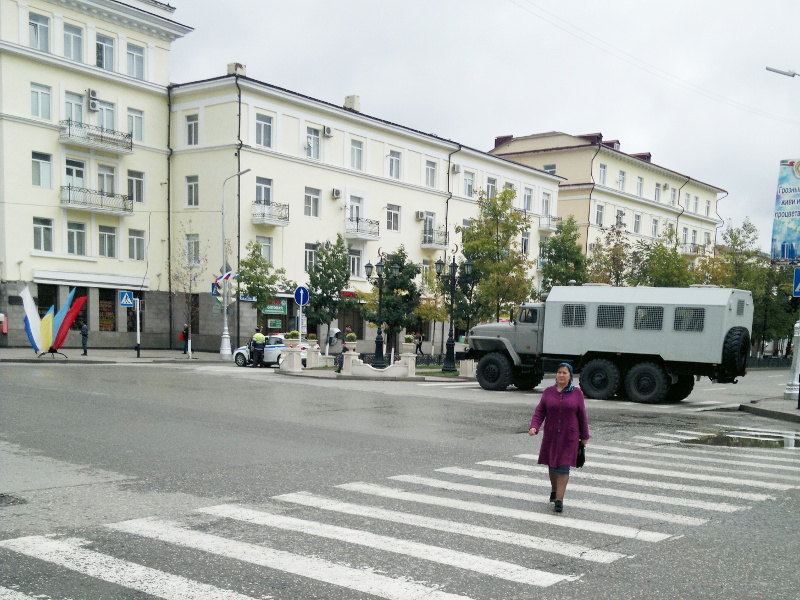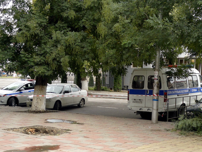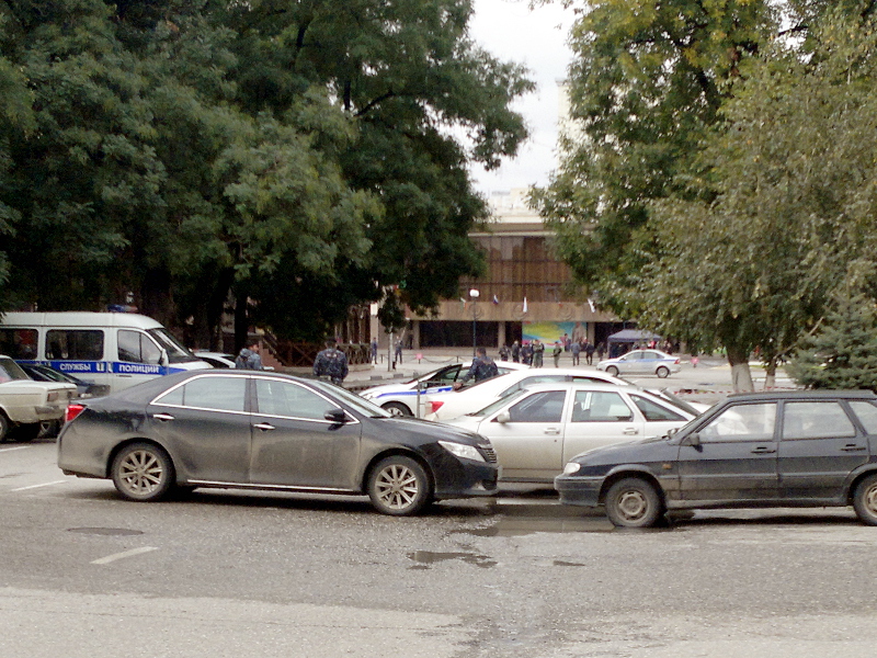 Оцепление в районе здания республиканского театрально-концертного зала.
