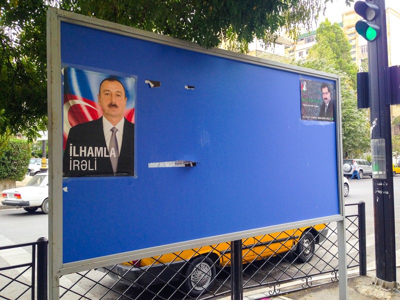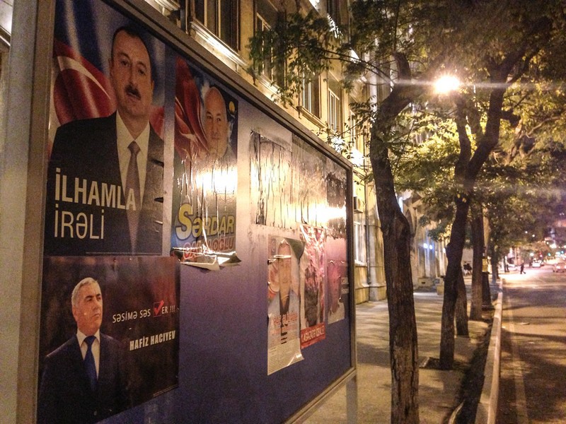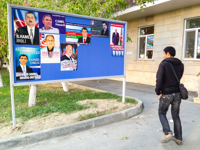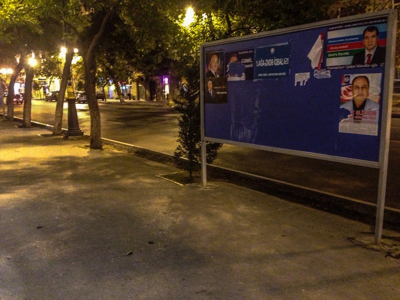 1. Стенд для предвыборной агитации рядом с Русским драматическим театром в Баку. 7 октября 2013 года.