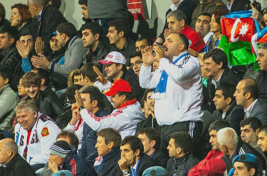 40. Футбольный матч сборных России и Азербайджана завершился со счетом 1:1. Фоторепортаж корреспондента "Кавказского узла" Азиза Каримова от 15 октября 2013 года.