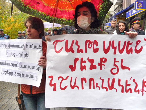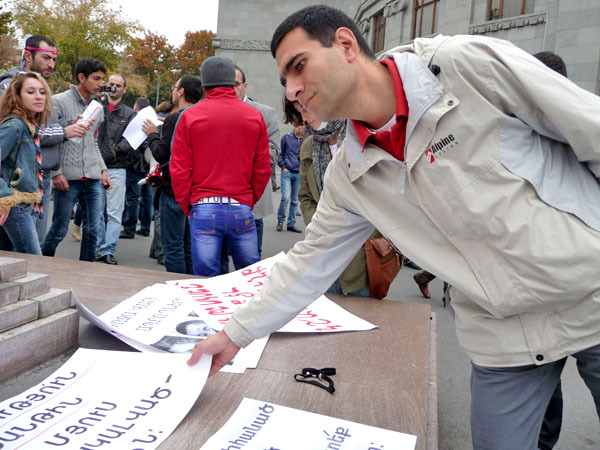 Акция протеста в поддержку арестованных после столкновений с полицией 5 ноября. Ереван, 9 ноября 2013 г. Фоторепортаж корреспондента "Кавказского узла" Армине Мартиросян