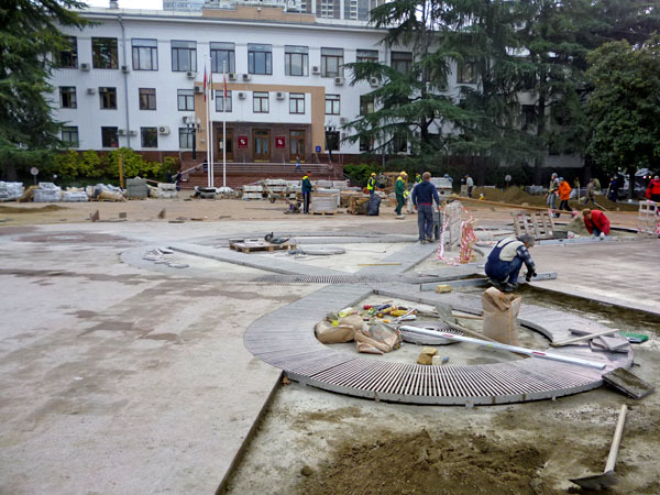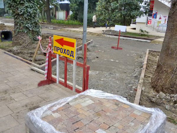 Строительные работы на улице Навагинская напротив администрации Центрального района в День города. Сочи, 21 ноября 2013 г. Фоторепортаж корреспондента "Кавказского узла" Светланы Кравченко