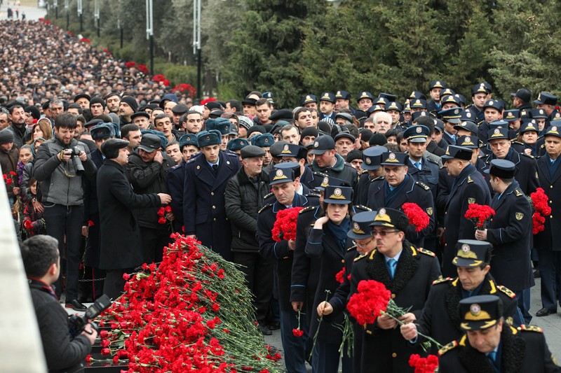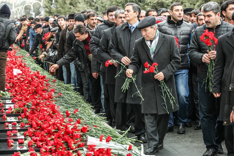 1. По традиции каждый год утром 20 января десятки тысяч людей направляются на Аллею шехидов, чтобы почтить память погибших.