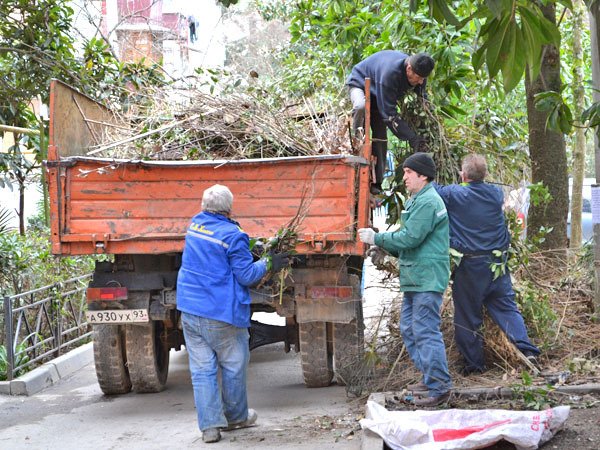 Пенсионеры-волонтеры убрали территории микрорайона "Гагаринский", пострадавшие при переносе теплотрассы. Сочи, 4 февраля 2014 г. Фоторепортаж корреспондента "Кавказского узла" Светланы Кравченко