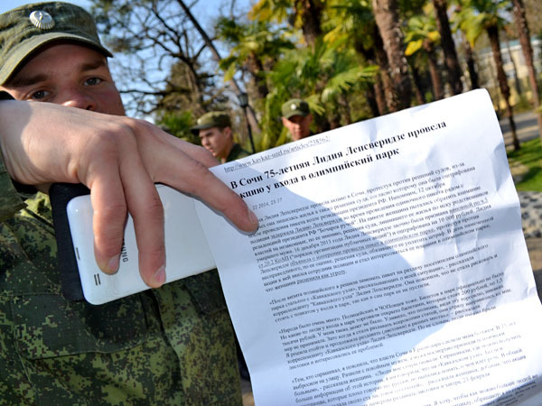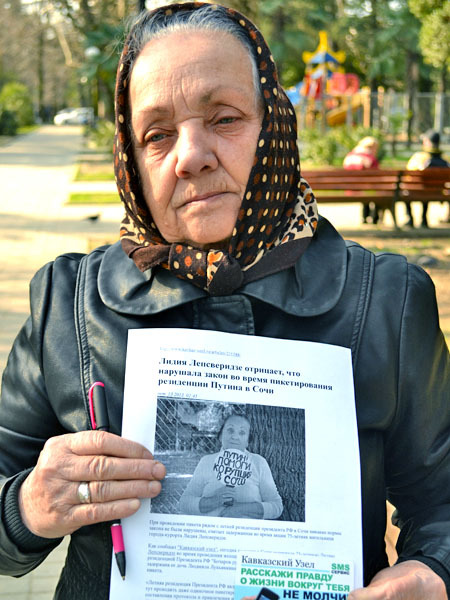 75-летняя Лидия Лепсверидзе провела акцию в центре города. Сочи, 24 февраля 2014 г. Фоторепортаж корреспондента "Кавказского узла" Светланы Кравченко