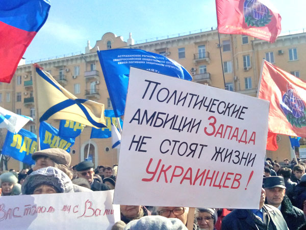 Митинг в поддержку жителей Украины. Астрахань, 9 марта 2014 г. Фоторепортаж корреспондента "Кавказского узла" Елены Гребенюк