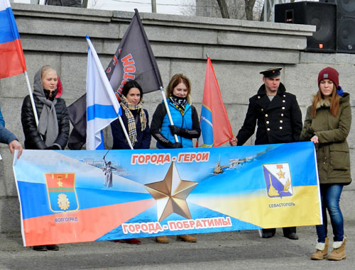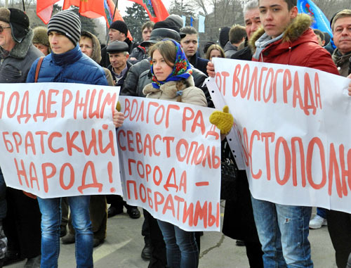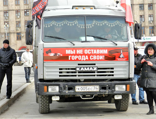 Митинг перед отправкой фур с гуманитарной помощью в Севастополь. Волгоград, 9 марта 2014 г. Фоторепортаж корреспондента «Кавказского узла» Татьяны Филимоновой