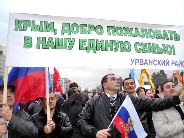 Митинг в поддержку присоединения Крыма. Нальчик, 18 марта 2014 г. Фоторепортаж корреспондента "Кавказского узла" Людмилы Маратовой
