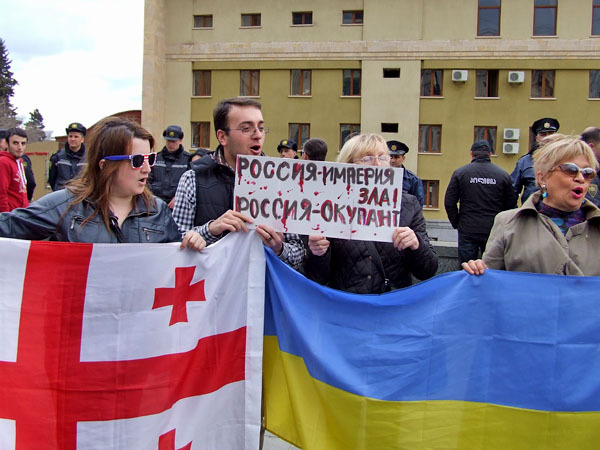 Акция протеста против телемоста с Россией. Тбилиси, 28 марта 2014 г. Фоторепортаж корреспондента "Кавказского узла" Эдиты Бадасян