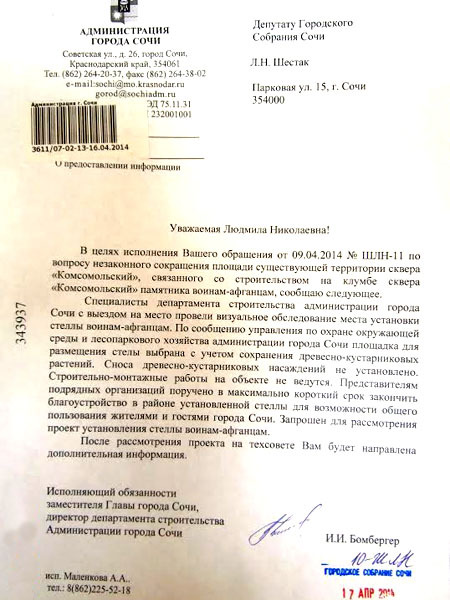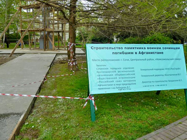 Строительные работы по возведению памятника воинам-афганцам на газоне Комсомольского сквера в Сочи не ведутся. Сочи, 14 апреля 2014 г. Фоторепортаж корреспондента "Кавказского узла" Светланы Кравченко