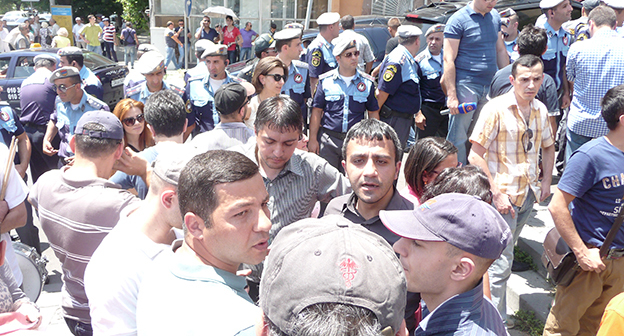 Акция протеста против повышения тарифов на электроэнергию в Ереване1 июля 2014 года