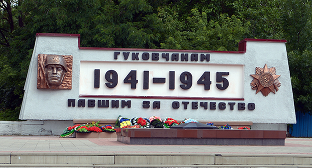 Стела-указатель на въезде в город Гуково, Ростовская область