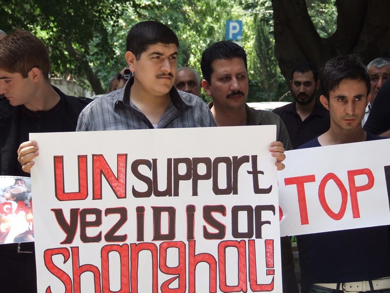 Акция осуждения массового преследования и притеснения езидов в округе Синджар на севере Ирака. Тбилиси, 6 августа 2014 года. Фоторепортаж корреспондента "Кавказского узла" Эдиты Бадасян.