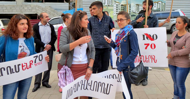 Акция против повышения тарифов на проезд в общественном транспорте Степанакерта. 29 сентября 2014 г. Фоторепортаж корреспондента "Кавказского узла" Алвард Григорян