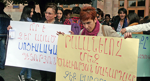 Fкция против новой системы распределения пособий матерям. Ереван, 23 октября 2014. Фоторепортаж корреспондента "Кавказского узла" Армине Мартиросян