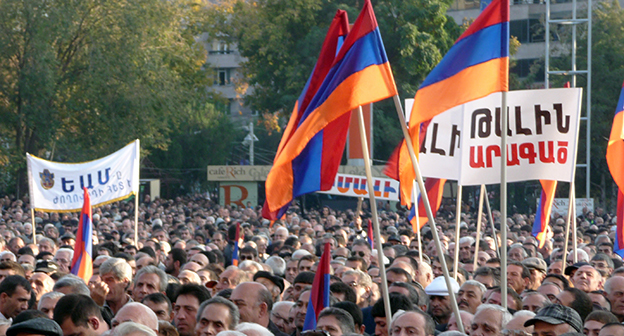 Невластные партии Армении провели 24 октября многотысячный митинг в Ереване с требованием отставки президента страны Сержа Саргсяна. Фоторепортаж корреспондента "Кавказского узла" Армине Мартиросян