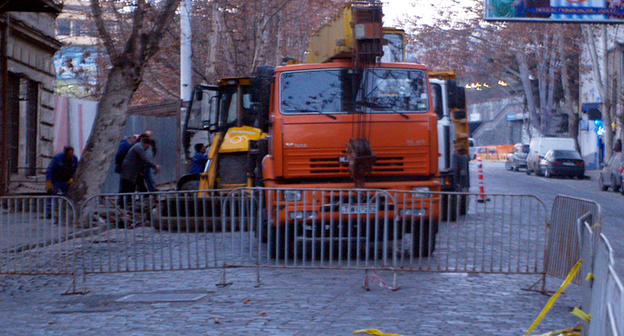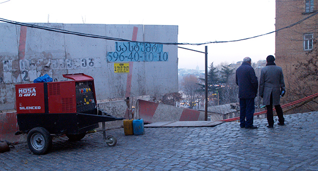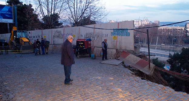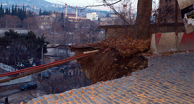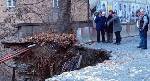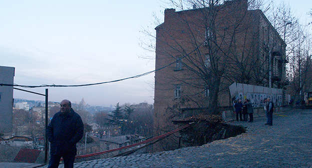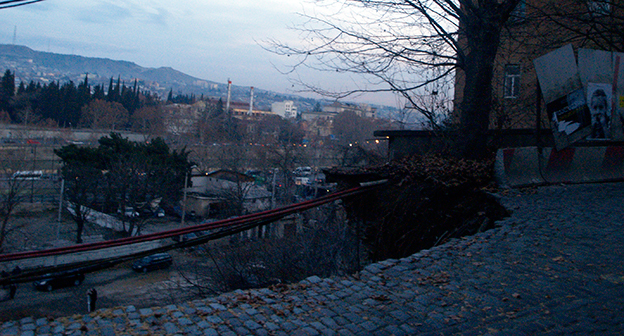 Провал участка проезжей части в Тбилиси. Фоторепортаж корреспондента "Кавказского узла" Беслана Кмузова