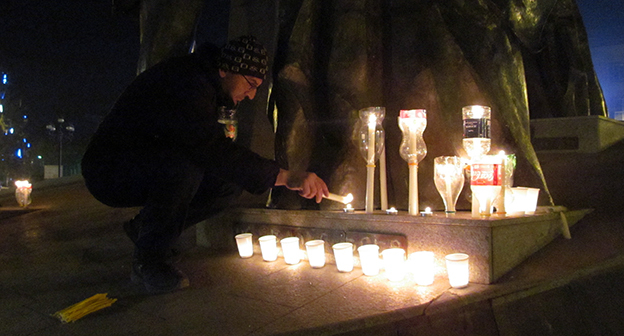Жители Гюмри почтили память семьи Аветисянов зажжением свечей на центральной площади Вардананц в Гюмри. 14 января 2015 г. Фоторепортаж корреспондента "Кавказского узла" Армине Мартиросян