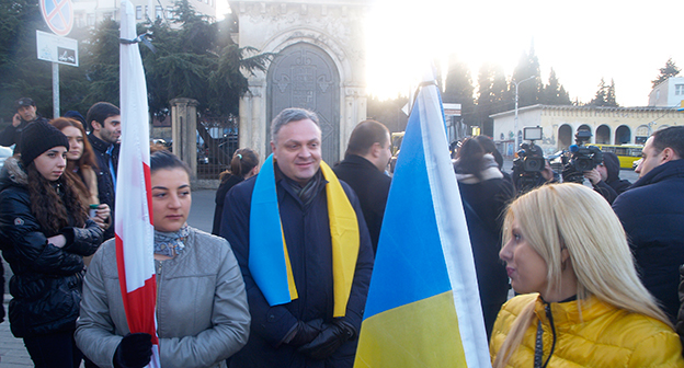 Траурная церемония в память о погибших под Волновахой. Украинское посольство в Грузии. 14 января 2015 г. Фоторепортаж корреспондента "Кавказского узла" Беслана Кмузова