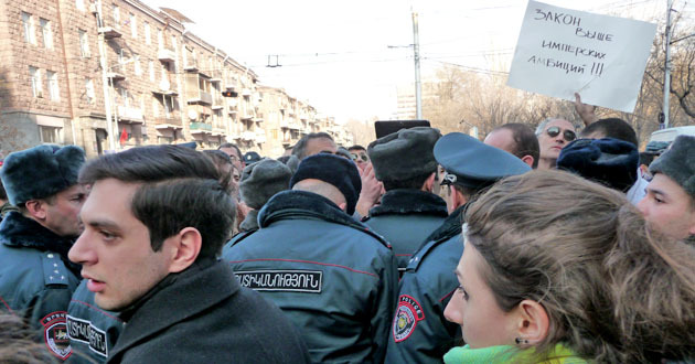 Акция протеста у посольства РФ в Армении. Ереван, 15 января 2015 г. Фоторепортаж корреспондента «Кавказского узла» Армине Мартиросян