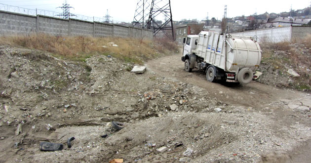 Крупная свалка в русле ручья в Восточном районе Новороссийска. Январь 2015 г. Фото Анны Грицевич для «Кавказского узла»