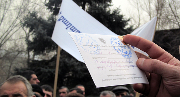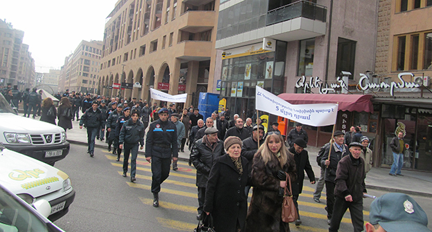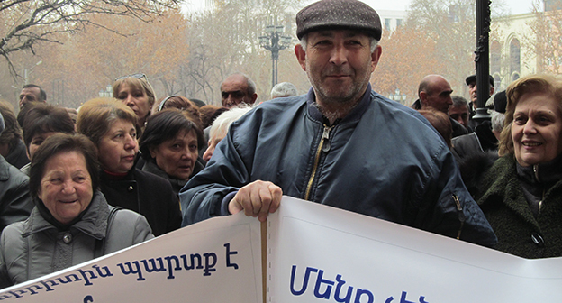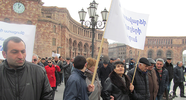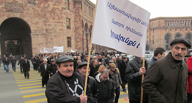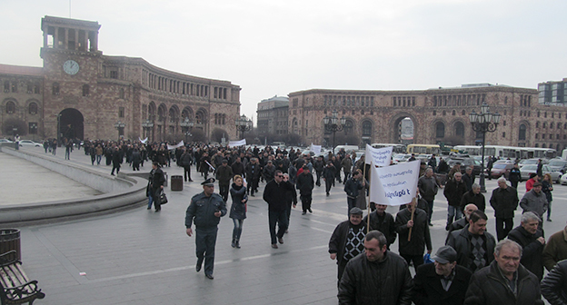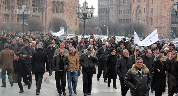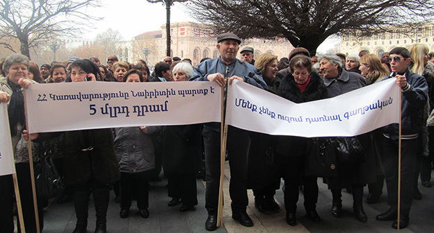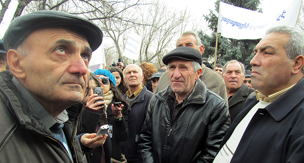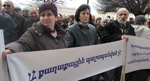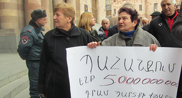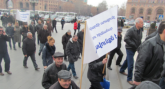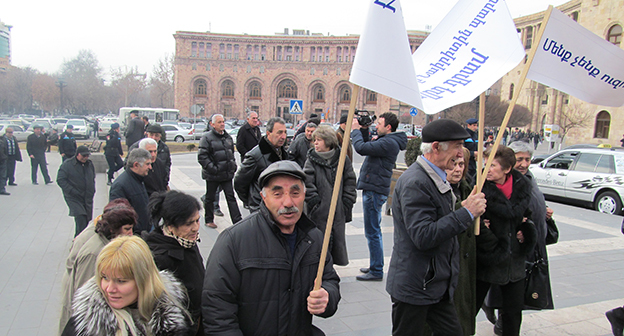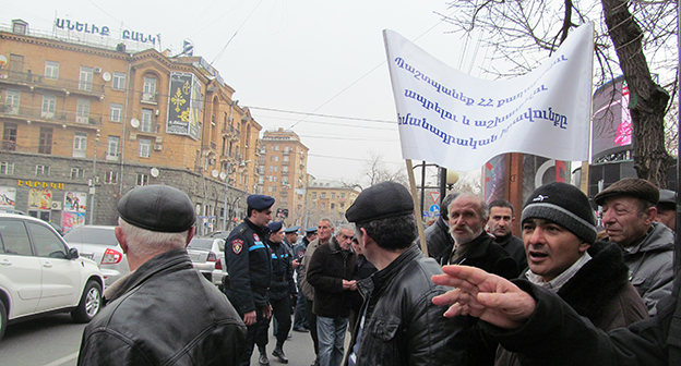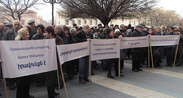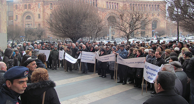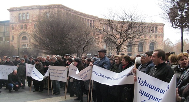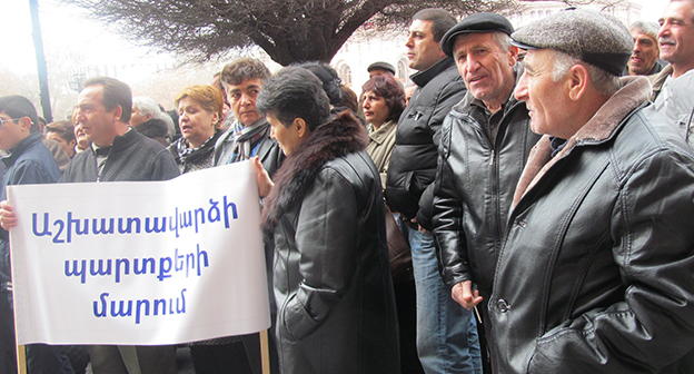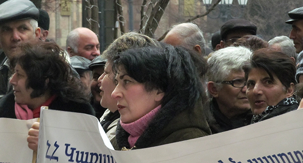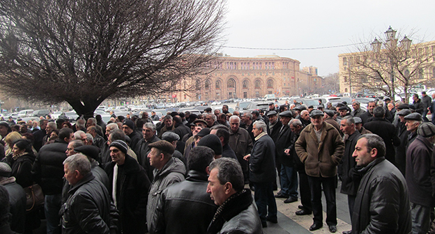 Бывшие сотрудники завода "Наирит" собрались 20 февраля перед зданием правительства Армении в Ереване и требуют погасить задолженность по зарплате. Фоторепортаж корреспондента "Кавказского узла" Армине Мартиросян