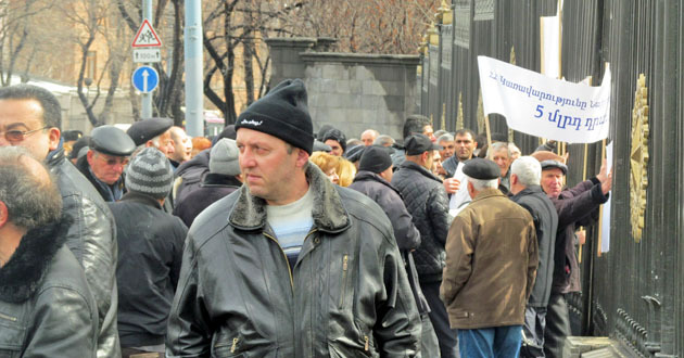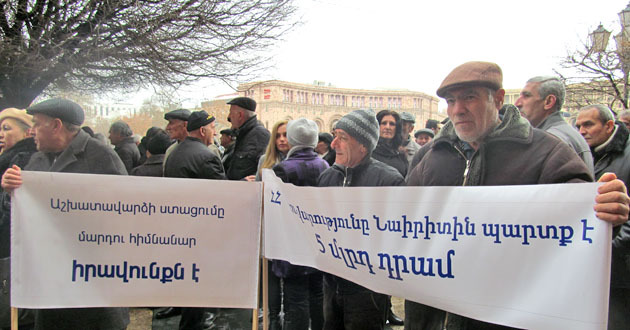 Акция бывших сотрудников завода "Наирит" с требованием погасить долги по зарплате. Ереван, 5 марта 2015 г. Фоторепортаж корреспондента "Кавказского узла" Тиграна Петросяна