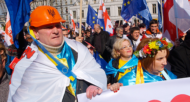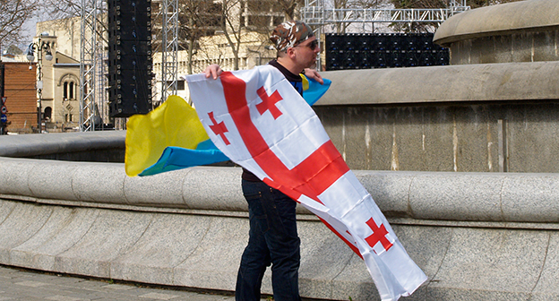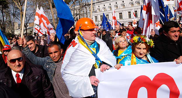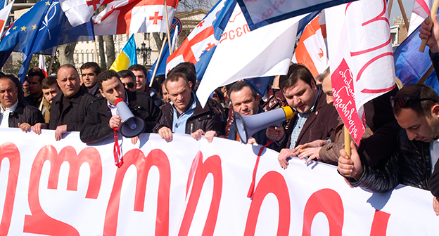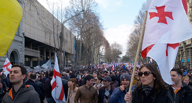 Акция ЕНД в Тбилиси возле здания Госканцелярии. 21 марта, Тбилиси. Фоторепортаж корреспондента "Кавказского узла" Беслана Кмузова