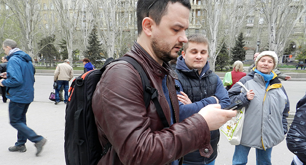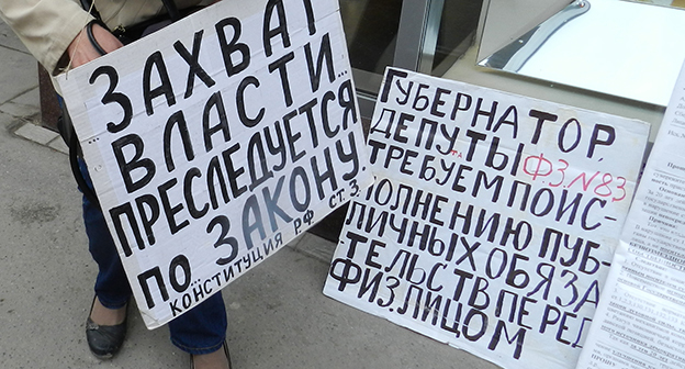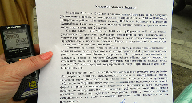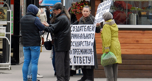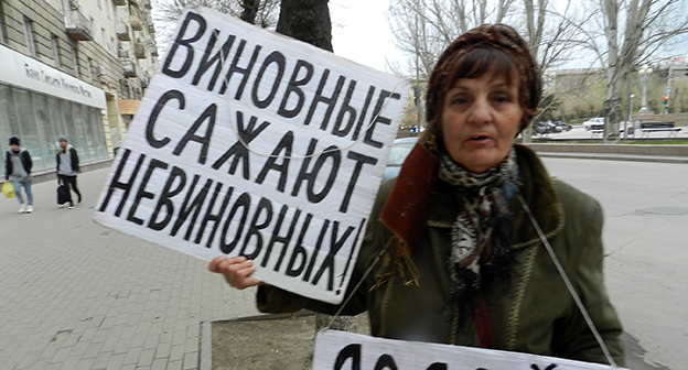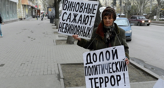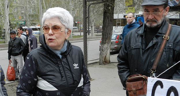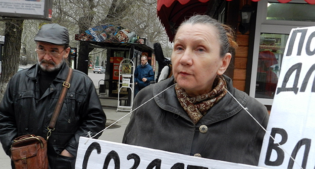 Одиночные пикеты против присоединения Крыма и за соблюдение законов РФ. Волгоград, 19 апреля 2015 года. Фотореопртаж корреспондента "Кавказского узла" Татьяны Филимоновой