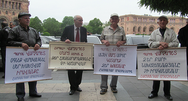 Бывшие летчики "Армянских авиалиний" требуют выплат пособий. 14 мая 2015 год. Фоторепортаж корреспондента "Кавказского узла" Тиграна Петросяна