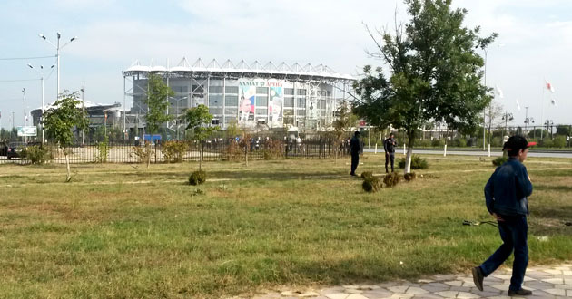 Сбор участников мероприятий у территории стадиона "Ахмат"