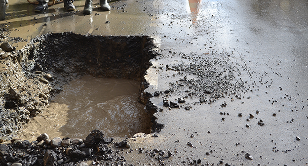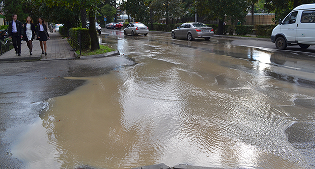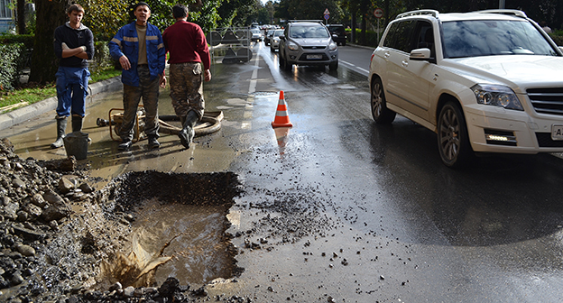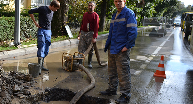 В Сочи на улице Гагарина между домами 8 и 10 произошел прорыв водовода. 17.10.2015. Фоторепортаж корреспондента "Кавказского узла" Светланы Кравченко
