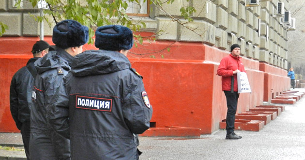 Пикетчики стояли вокруг здания областной администрации в Центральном районе Волгограда, а также в находящемся напротив него сквере