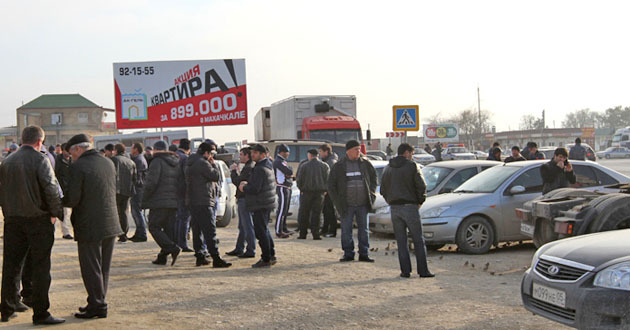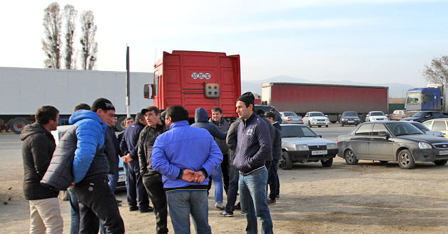 Акция протеста дальнобойщиков в Манасе. Дагестан, 23 ноября 2015 г. Фоторепортаж корреспондента "Кавказского узла" Руслана Алибекова