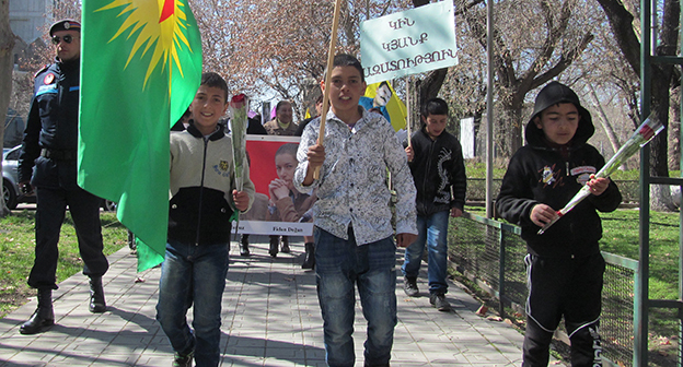 Курдская община Армении требует прекратить геноцид курдов в Турции. Фоторепортаж корреспондента "Кавказского узла" Тиграна Петросяна