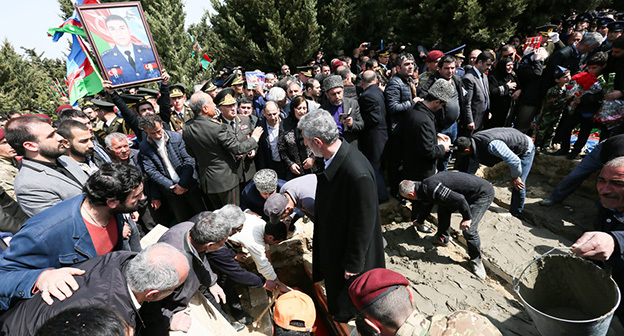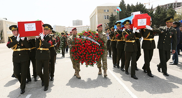 Церемония прощания с четырьмя азербайджанскими офицерами, погибшими в ходе боев в Нагорном Карабахе 11.04.2016. Фоторепортаж корреспондента "Кавказского узла" Азиза Каримова