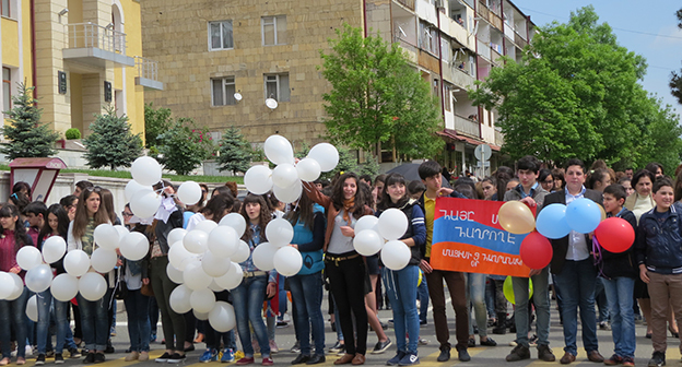 Памятные мероприятия прошли 9 мая 2016 года во всех городах Нагорного Карабаха. Фоторепортаж корреспондента "Кавказского узла" Алвард Григорян