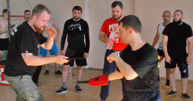 Дмитрий Демушкин провел семинар по казачьему ножевому бою. Астрахань, 26 июня 2016 г. Фоторепортаж корреспондента "Кавказского узла" Елены Гребенюк