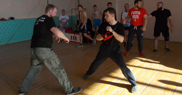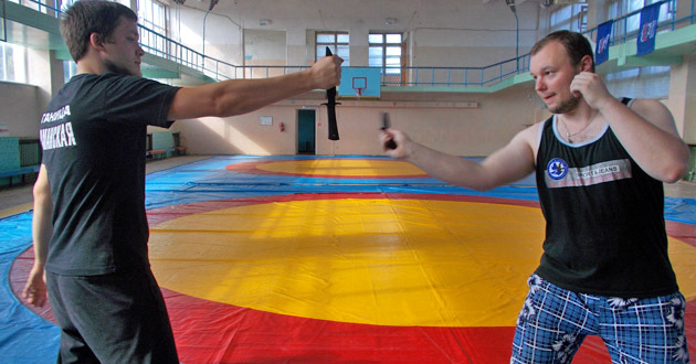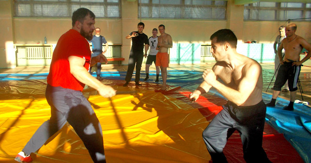 Дмитрий Демушкин (слева) проводит тренировочный бой
